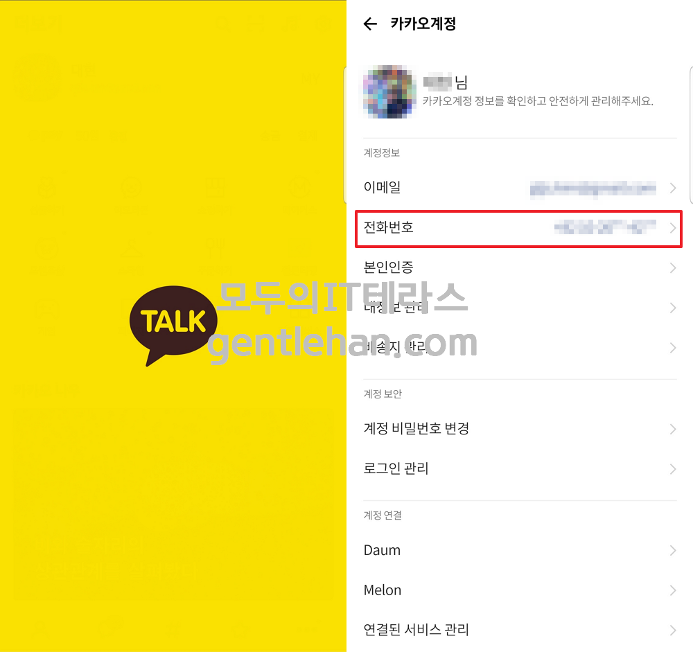 1. 새로운 폰에서 카카오톡을 설치하고, 기존에 사용했던 카카오 계정으로 로그인하여, 전화번호 인증을 마칩니다.