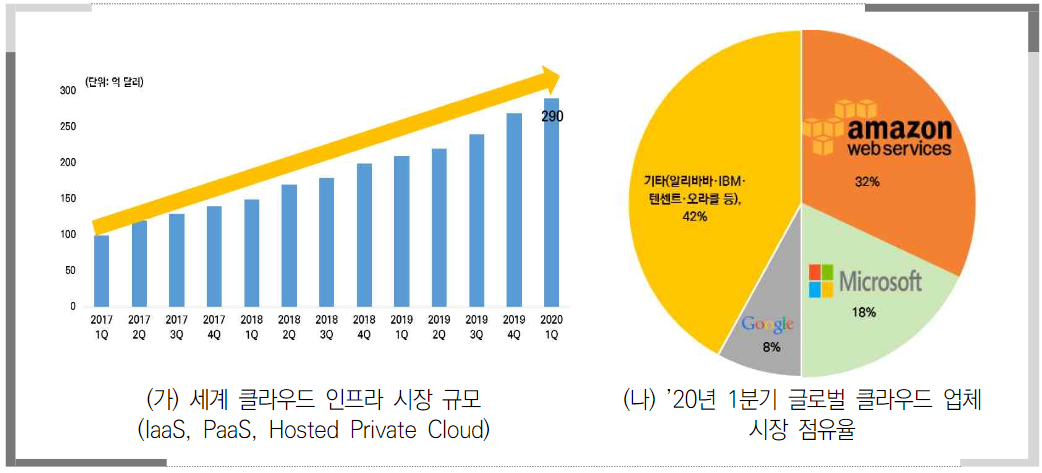 코로나19가 확산·장기화되고 있는 상황 속에서도 AWS·MS·구글 등 글로벌 클라우드 기업은 클라우드 기반 원격 서비스 사용량 급증에 힘입어 ’20년 1분기 호실적을 기록했습니다.