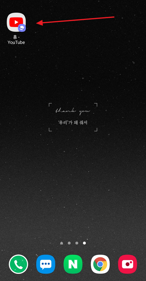그럼 아래와 같이 홈화면에 '유튜브 바로가기 아이콘'이 생성되며, 이제부터는 유튜브앱이 아닌, 이 바로가기 아이콘으로 접속해서 유튜브를 시청하시면 광고없이 무료로 즐겁게 시청 가능합니다.