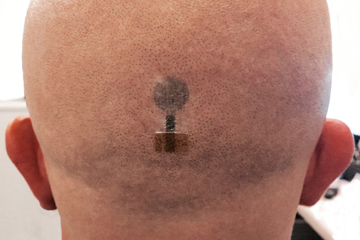 타투의 전극이 정확히 보이지 않는 것은 아니지만 기존의 EEG 전극 헤드셋처럼 타투를 붙인 사람을 불편하게 하지는 않습니다. 심지어 타투를 했다는 사실 조차 잊어버릴 수 있는 재미있는 장점도 있습니다.