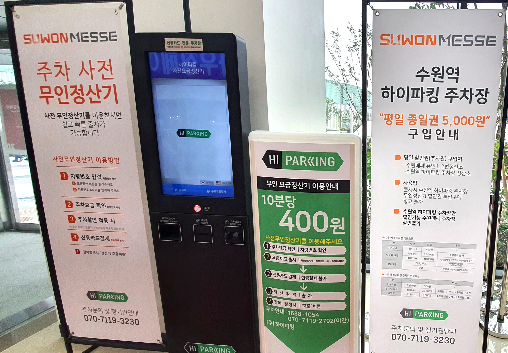 수원 메쎄 주차는 수원역 하이파킹 주차장을 이용하는데 메쎄 입구에 추자 사전 무인정산기로 요금을 미리 결제할 수 있습니다.