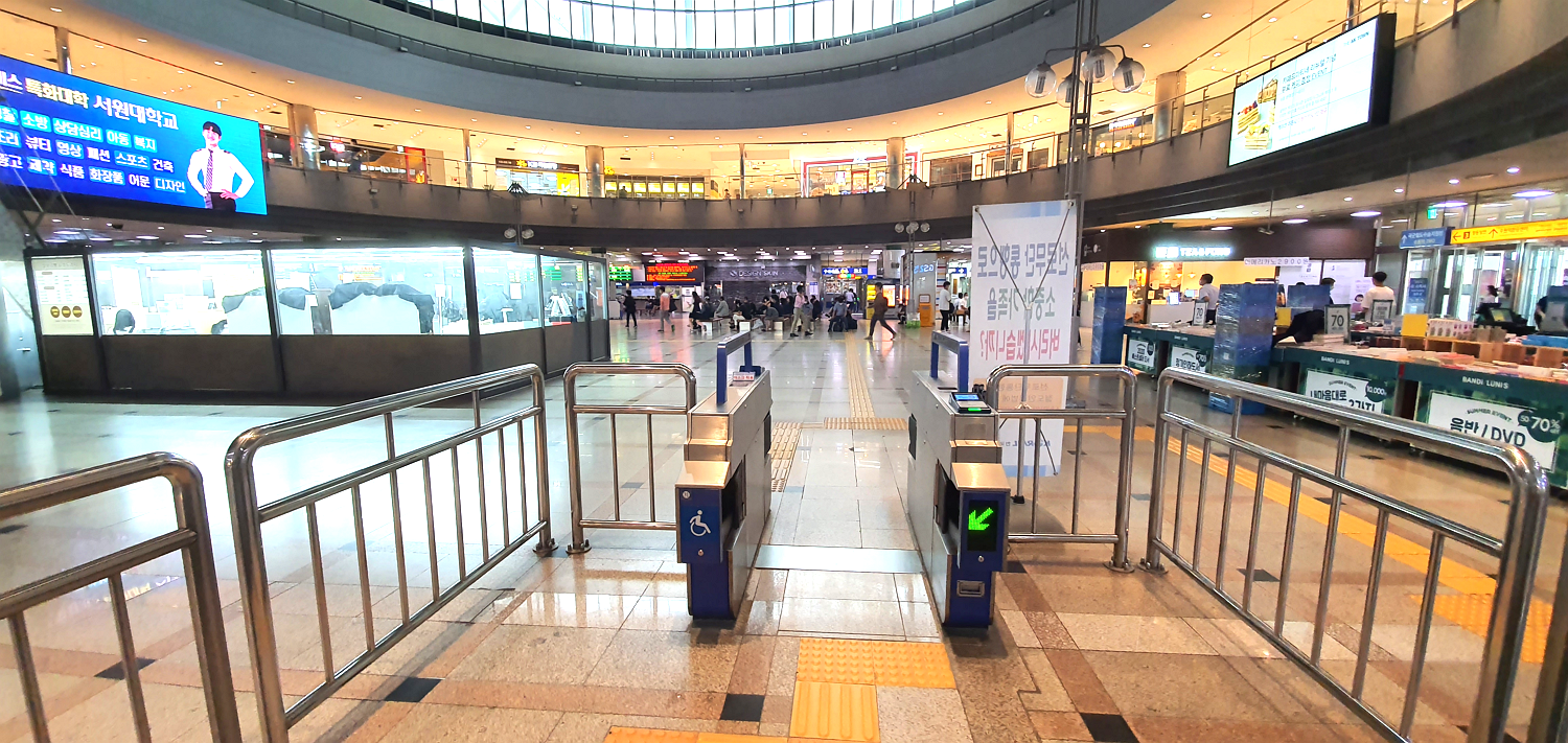 마지막 관문입니다. 엘리베이터를 내리자마자 게이트를 나가면 바로 2층 대합실 도착! 이제 즐겁게 기차를 타러 가면 됩니다.