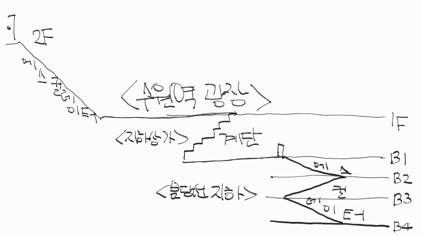 개발새발그렸지만 대략 이러한 느낌의 아주 경이로운 루트로 기차 대합실까지 이동해야 하는 것! 만약 이렇게 이동을 할 경우 기차 시간이 급하게 닥쳤을 경우 2층까지 올라서지도 못한 체. 숨을 헐떡이며 기차를 놓칠 수도 있는 불행 중의 불행도 닥칠 수 있는 우려가 있습니다.