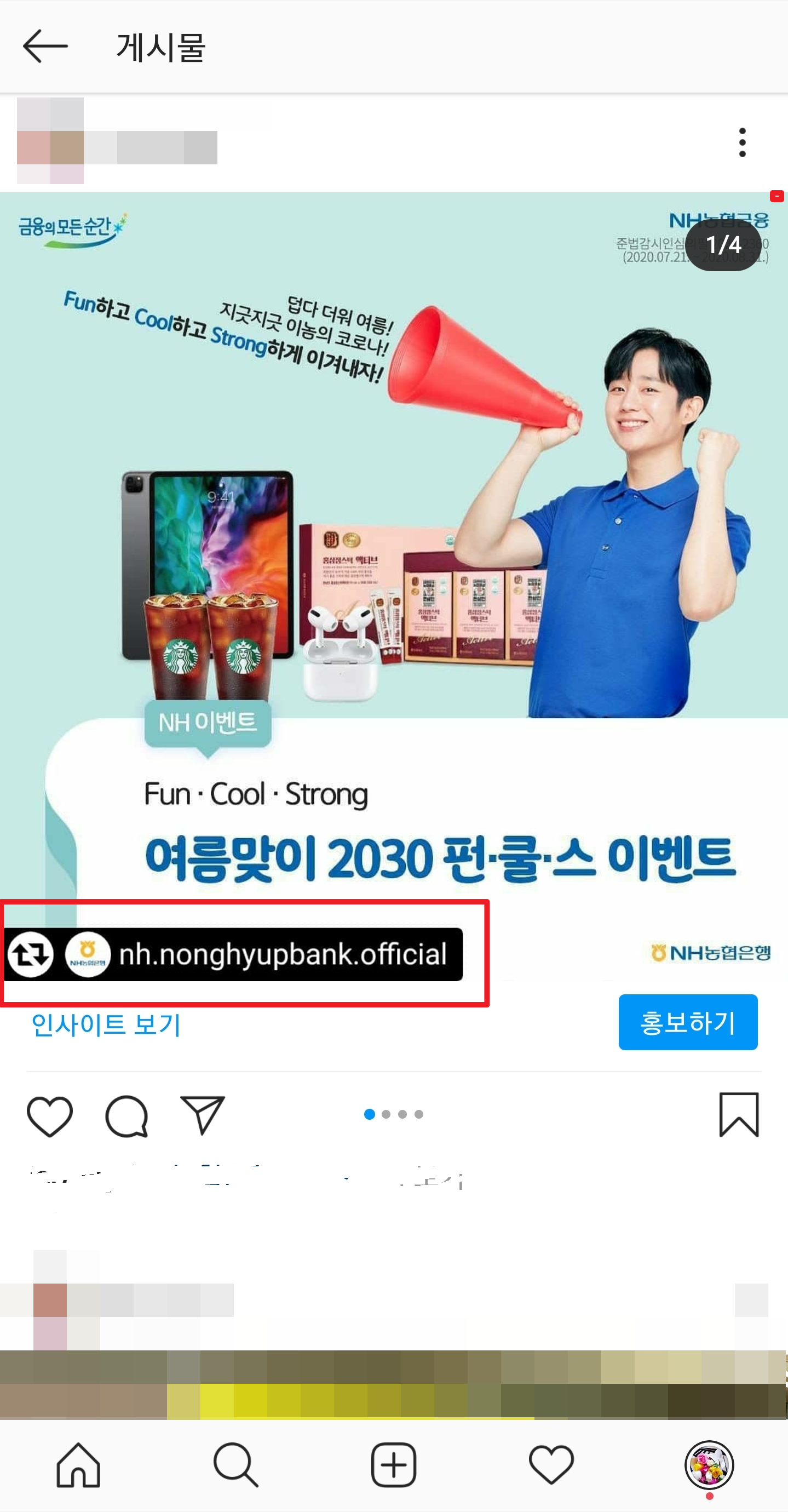 인스타그램이 실행되면 피드에서 리그램을 할 컨텐츠를 찾아줍니다.