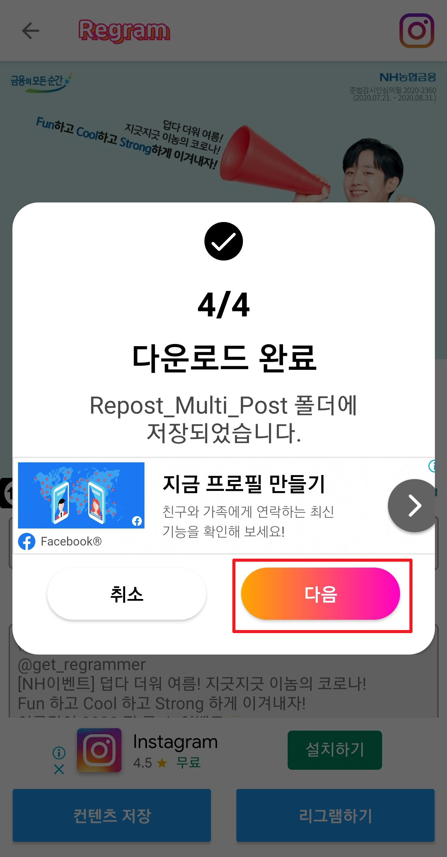 이제 쉽게 리그램하면서 인스타그램을 즐겨보세요.