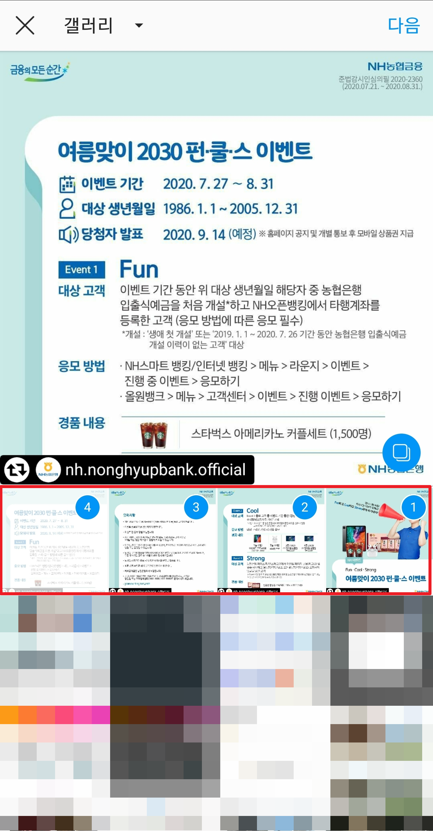 그럼 리그램할 컨텐츠들 중, 사진들은 '갤러리'에, 본문 내용은 '클립보드'에 저장이 됩니다. 이 과정은 리그램할 이미지에 '인스타ID를 합치는 과정'으로 리그램할 이미지에 원본 인스타 ID가 워터마크로 붙게 됩니다.