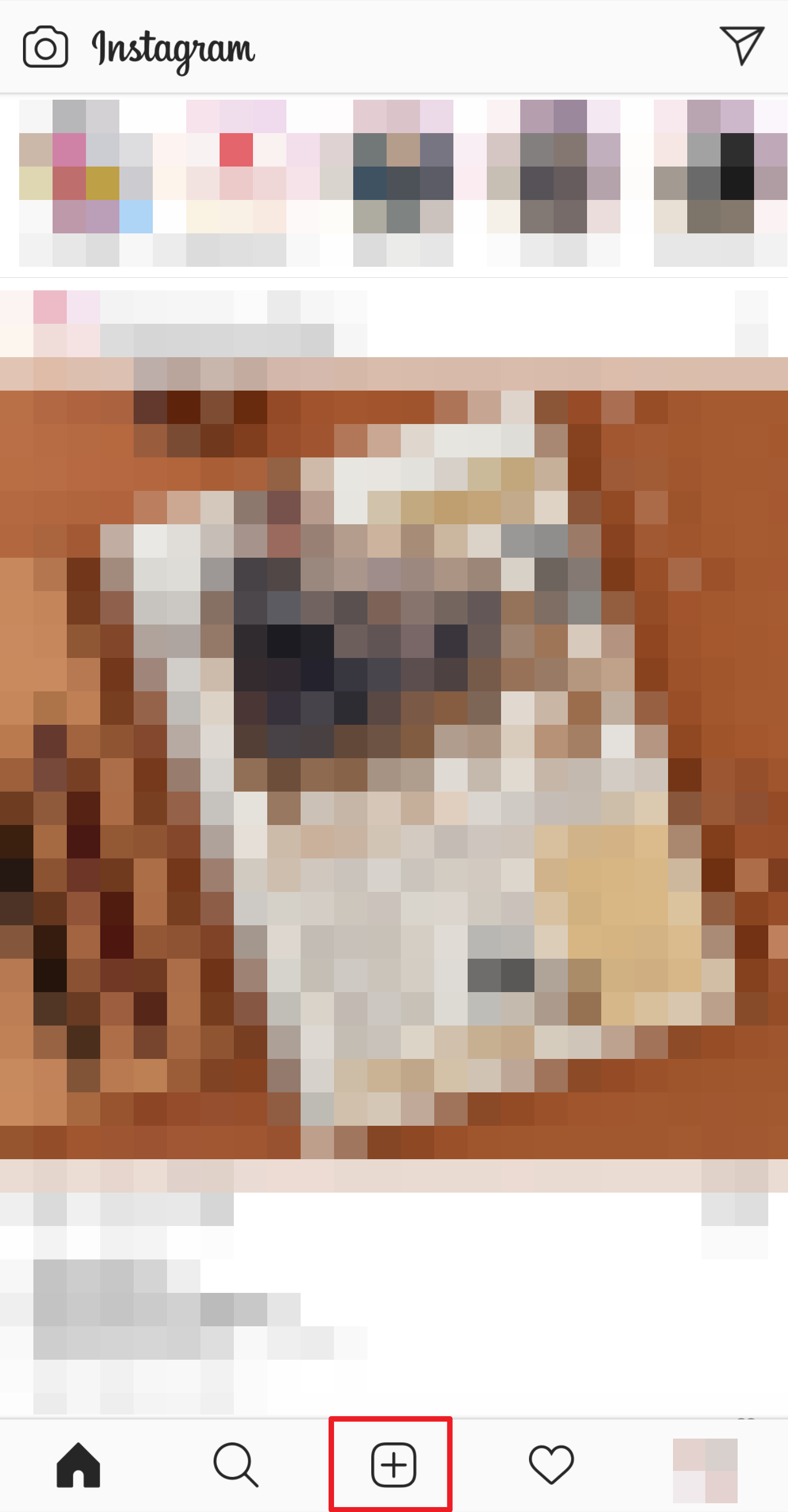 인스타그램이 열리면, 맨 밑에 있는 [+] 버튼을 눌러서 피드를 올릴 사진들을 찾아줍니다. 여러장을 올릴 것이기 때문에 [여러장 올리기] 옵션을 선택하고, 사진을 선택해줍니다.