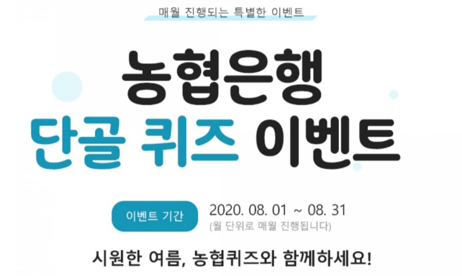 올원뱅크에서 진행하는 농협은행 단골 퀴즈 이벤트가 8월 1일부터 8월 31일까지 어플을 통해서 오픈되었습니다.