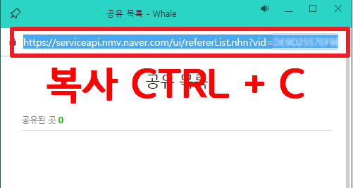 공유버튼을 눌러서 나타는 팝업의 URL을 복사해 줍니다.