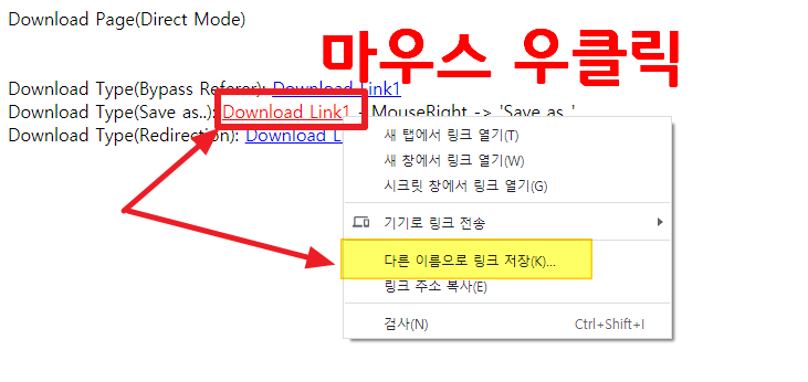 [위 저작권법에 동의하며 다운로드합니다] 버튼을 누르면, 아래와 같은 페이지가 나타나는데, 2번째 줄에 있는 [Download Link1] 위에서 마우스 오른쪽 버튼 클릭으로 나타나는 대화상자에서 [다른이름으로 링크 저장]을 선택합니다.