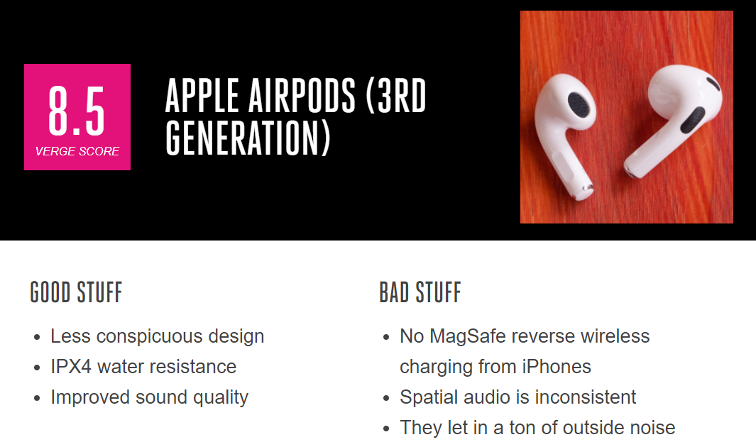 물론, 액티브 노이즈 캔슬링과 같은 특별한 기능을 원한다면, 에어팟 프로나 에어팟 맥스를 구입하는 것이 당연하겠지만, 그 외의 기능적인 단순 업그레이드를 원하는 1세대나 2세대를 사용하던 사용자들은 3세대 에어팟에 구미가 끌릴 것 같습니다.