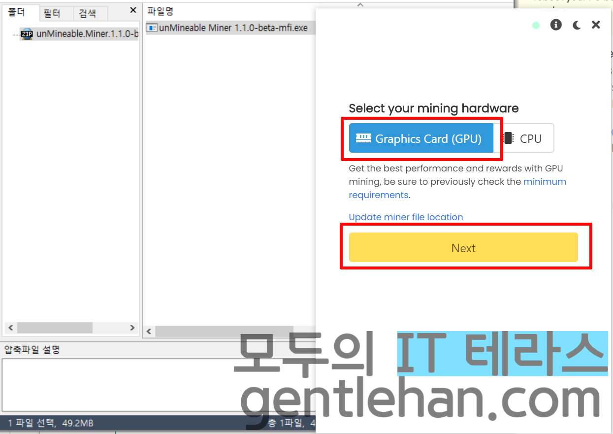 GPU와 CPU 중 고민되실 수가 있는데, 보통 CPU보다는 GPU의 시간당 채굴량이 더 높다고 하니 GPU를 선택하시는 것이 더 낫습니다.