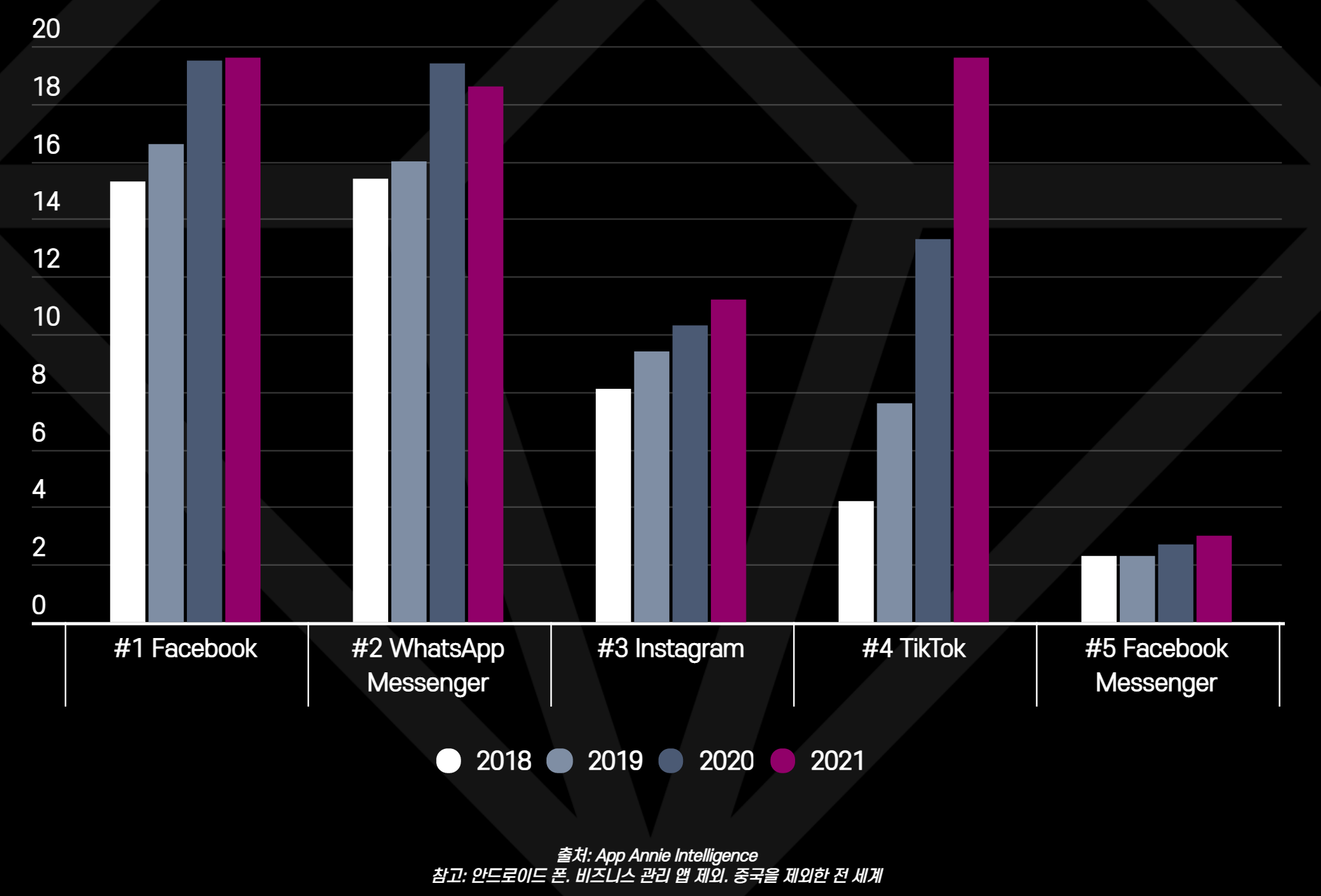 틱톡은 15초~3분 이내의 짧은 동영상을 주로 소비시키는데, 미국과 영국에서는 1인당 월 평균 이용시간에서 이미 유튜브를 제쳤는데, 미국은 5월 평균 24시간 30분, 영국은 5월 평균 26시간을 틱톡 영상을 보는데 사용하고 있다고 합니다.