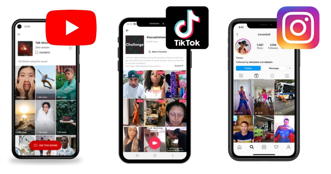 10대~20대들이 짧은 동영상을 올리는 게 문화로 자리잡은 요첨, 틱톡 뿐만 아니라 인스타그램이나 유튜브도 Reels와 Shorts서비스를 연달아 출시하면서 MZ세대들을 이끄려는 노력을 하고 있으며 3개의 플랫폼에서 활발하게 숏폼 동영상 콘텐츠가 생산되고 있습니다.