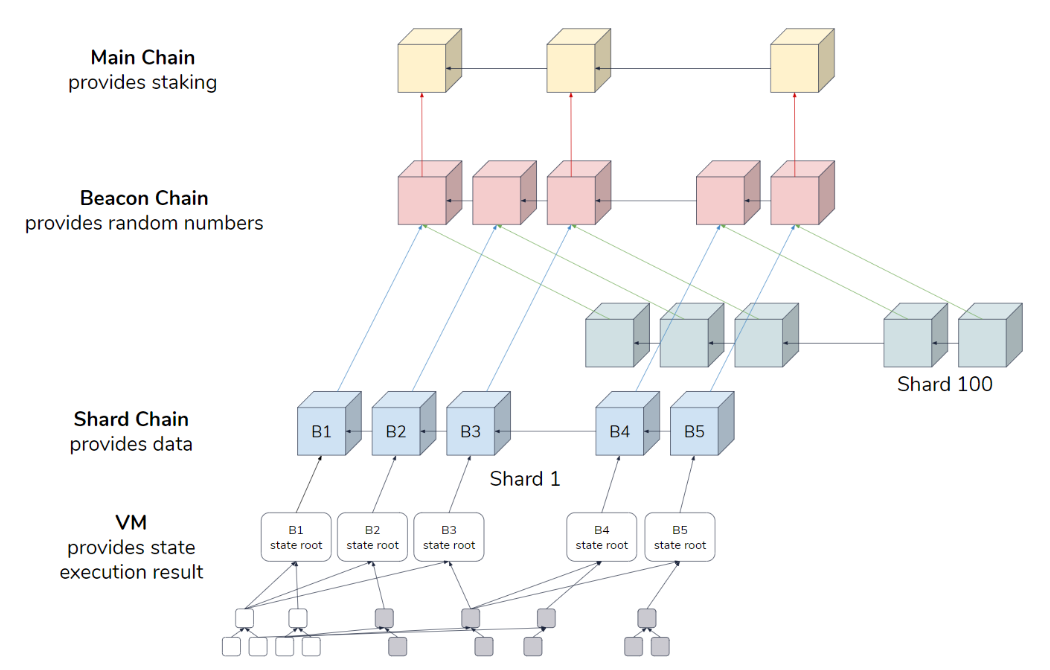 이더리움 2.0 데이터 측면에서 더 가볍고 빠른 처리를 위해 작업 증명 방식을 PoW에서 PoS로 바꾸고 샤딩 기술을 도입했습니다.