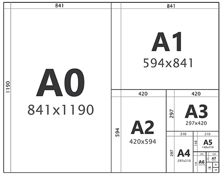 | A0 | 841 x 1189 | 84.1 x 118.9 | 33.1 x 46.8 |