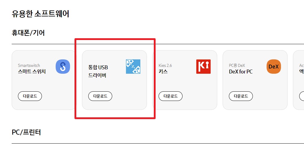 요렇게 device가 나와야되요. 안나오면 PC에 핸드폰 드라이버가 안깔린 것일 수도 있으니 아래에서 다운받아서 설치 후 다시 시도~!!
