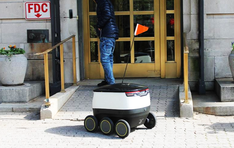 스타쉽테크놀로지스는 푸드 공급 및 관리 서비스 업체인 소덱소(Sodexo)와 제휴하여 조지 메이슨 대학(George Mason University)에 식음료 자율 배송 로봇 서비스를 개시했는데요. 6개의 바퀴와 360도 전방위 탐지가 가능한 감지기를 이용하여 조지 메이슨 대학의 4만여 명의 학생과 교수진, 직원을 대상으로 스타쉽테크놀로지스의 자율 배송 로봇을 이용해 식음료를 배달하고 있습니다. 이용자가 스마트폰 앱으로 블레이즈 피자, 스타벅스 음료, 던킨 도너츠 등을 주문하면 배달 로봇이 나르는 방식으로 서비스를 제공합니다. 이용자의 주문이 접수되면 식당 직원은 로봇에 음식을 넣고 뚜껑이 닫히는 동시에 로봇이 주문자가 원하는 곳을 향해 보도를 따라 시속 6km로 이동하는 구조로 앞으로 2년 내에 100개 이상의 대학으로 영역을 확장하여 100만 명 이상의 학생에게 배달 서비스를 제공할 계획입니다.