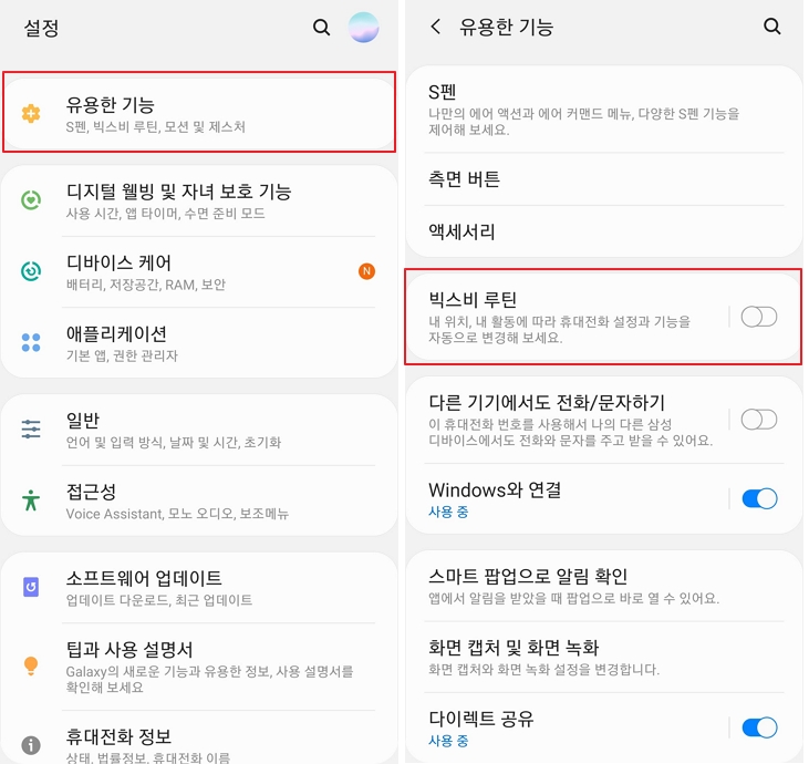 1) 빅스비 루틴 (갤럭시 S10 이상 가능)