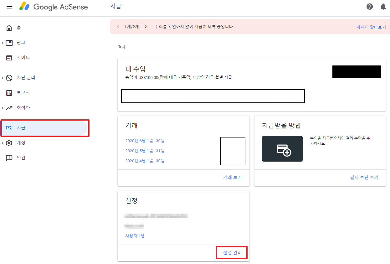 구글 애드센스 PIN번호 받기와 수익 지급 과정(지급 보류 해결, 주소 입력)